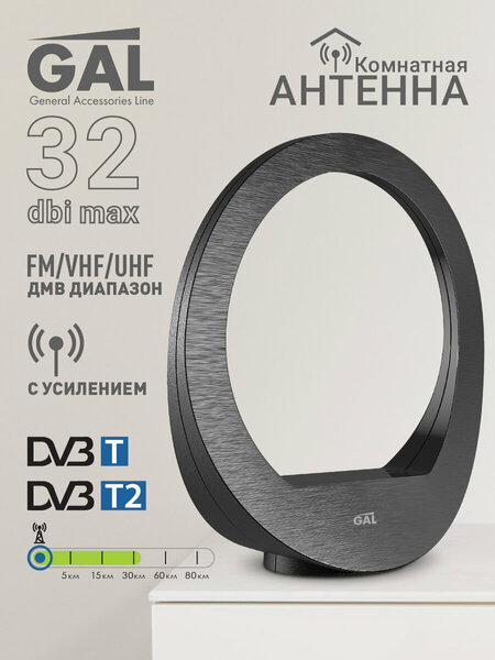 Антенна для телевизора комнатная с усилителем GAL 30 км DVB-T/Т2 для аналогового и цифрового ТВ кабель 1,4 м. AR-458