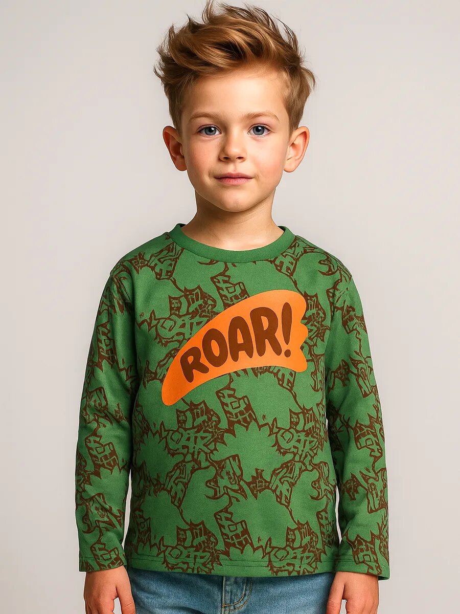 Лонгслив детский для мальчиков оверсайз KariKids размер 5-6 - стильный и комфортный выбор для вашего ребенка. Изготовленный из высококачественного хлопка (95% хлопок, 5% эластан), этот лонгслив обеспечивает дышащий материал, который подходит для носки на любой сезон. Оверсайз крой и прямой покрой лонгслива позволяют ребенку чувствовать себя свободно и комфортно. Лонгслив украшен оригинальным принтом с изображением животных, что делает его ярким и запоминающимся. Круглый вырез горловины и длинные рукава добавляют изюминку в дизайн. Уход за лонгсливом прост: отбеливание запрещено, стирка при температуре не более 30°C и химическая чистка запрещена. Выбирая лонгслив детский для мальчиков оверсайз KariKids размер 5-6, вы обеспечиваете своему ребенку комфорт, стиль и качество на каждый день.