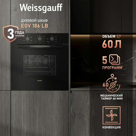 Электрический духовой шкаф Weissgauff EOV 186 LB , 5 режимов с конвекцией и грилем
