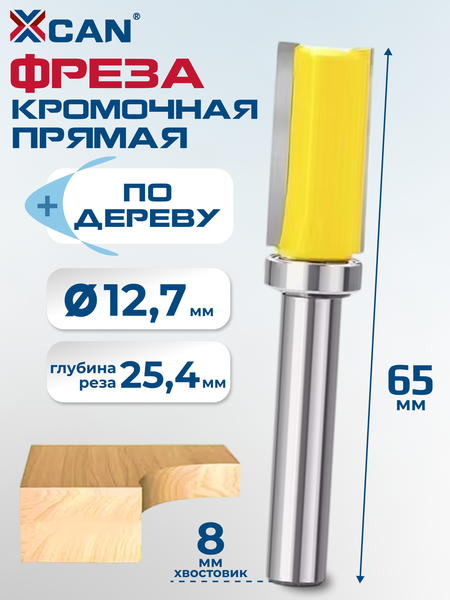 Фреза кромочная прямая (обгонная) XCAN с верхним подшипником 8х12,7х25,4х65 мм