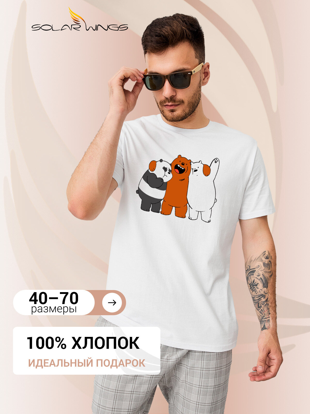 Мужская белая оверсайз футболка свободного кроя из 100% хлопка с принтом для мужчин с рисунком веселых друзей медведей. Белого, бурого и панды. Майка с принтом с коротким рукавом, удлиненная, плотная, стильная. . В размерном ряду есть футболка больших размеров до 6XL. Прикольная мужская футболка- отличный подарок на День рождения, Новый год, 23 февраля, юбилей для любимого парня, папы, брата, друга.