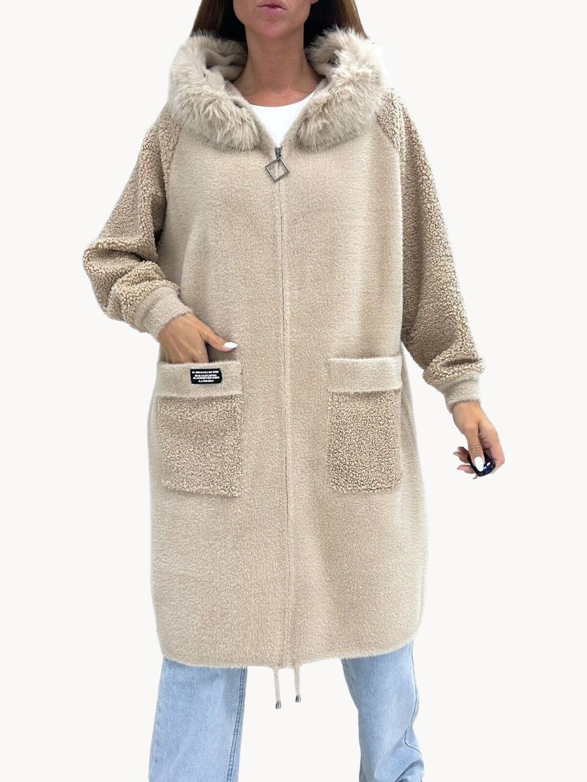 Достоинства: сначала купила себе, так понравился, теперь взяла маме, но теперь только с мехом, отличный кардиган, качество супер, стирала, не линяет, не садится, катушки не собирает, всё супер, спасибо