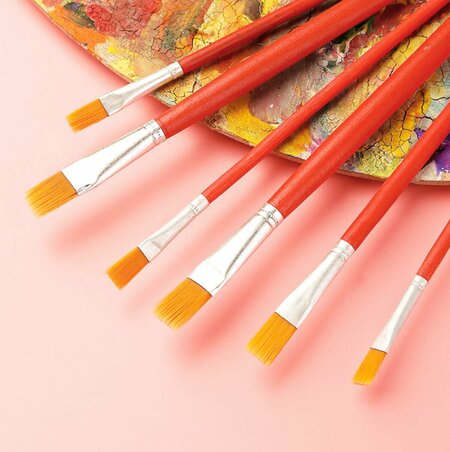 Кисти художественные для рисования и творчества, набор 6 шт, синтетика. Для акварели, акрила, гуаши. Красный цвет.