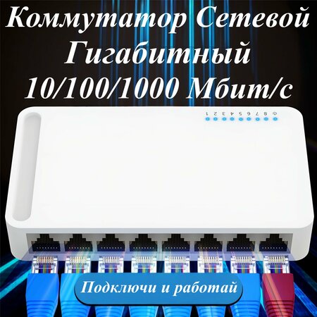 Данный коммутатор с 8 каналами 1000 Мбит/с идеально подойдёт для расширения проводной сети дома или в офисе. Где бы вы не разместили данный компактный коммутатор, он не займёт много места. Гигабитный Ethernet-коммутатор RJ-45, совместимый LEEE802.3u, стандарт IEEE802.3ab Полное/полудуплексное питание, Модель трансмиссии: Полный дуплекс: lEEE802.3X, Полудуплекс: Обратное давление Plug-and-Play: настройка не требуется идеально подходит для дома/малого офиса и малого и среднего бизнеса. Безопасный выбор для дома и бизнеса с поддержкой 8-ми разъёмов. Поддержка IEEE802.3X для работы в полнодуплексном режиме, 10Base-T, 100Base-T и 1000Base FX. Поддержка управления потоком для работы в полнодуплексном режиме и противодавления для работы в полудуплексном режиме Автоматическая конфигурация MDI/MDI-X