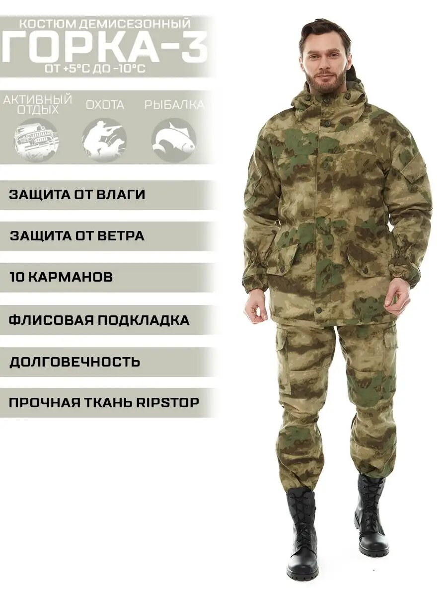 При выборе размера ориентируйтесь на размерную сетку на одном из последний слайдов! Камуфляжный демисезонный мужской костюм горка 3 на пуговицах, состоит из куртки и штанов (с подтяжками) на флисе. Тактический комплект выполнен из ткани Rip Stop (20% хлопок; 80% полиэстер; плотность 215 гр/м. кв) с влагозащитной пропиткой от дождя. Утеплитель – флис в виде приятной подкладки (100% полиэстер; плотность 260 гр/м. кв) Температурный режим +10 -10 градусов, подойдет на весну, осень и еврозиму. Маскировочный костюм горка 3 демисезон обладает влагоотталкивающими свойствами благодаря специальной пропитке ткани. Удобный силуэт и милитари цвета делают утепленную горку идеальным выбором для туристических, походных, рыболовных и охотничьих поездок. Флис обеспечивает комфорт и тепло, даже в холодную погоду. Много карманов, утягивающие резинки в области талии, рукавов, штанов для удобной посадки. Ветрозащитная планка на куртке защищает от ветра. Куртка на пуговицах. Легкий охотничий, рыболовный камуфляжный костюм. Военная форма полюбилась поклонникам активного отдыха в лесу, рыбалки, охоты. Камуфляж подойдет в качестве спецодежды для охраны, охотника, рыбака, для рабочего или повседневного использования. Туризм, походы, кемпинг, аутдор, игра в страйкбол и пейнтбол. Комплект из кителя и брюк, изготовленных из прочных тканей с флисовым утеплителем, подходит для осеннего и весеннего периодов. Теплые деми куртка и брюки прекрасно подойдут для мужчин. Надежная и стильная одежда для активных людей, ищущих сочетание комфорта и функциональности. Универсальный камуфляжный рисунок темно-коричневый мультикам идеально маскирует в осеннем лесу и сочетается с другим элементами военно тактической экипировки. Все лекала разработаны согласно госту. Утепленный рабочий камуфляж осень-весна может стать отличным подарком для вашего сына, мужа, или отца на 23 февраля, день рождения или к другому празднику.