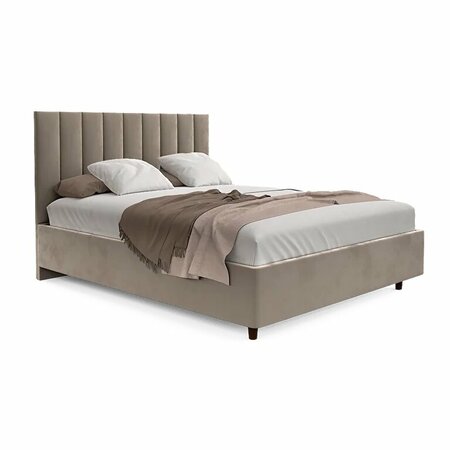 Кровать 140х200 с мягкой обивкой из велюра и подъемным механизмом с ножками с изголовьем 112 см, цвет серо-коричневый