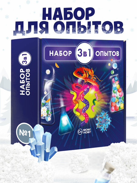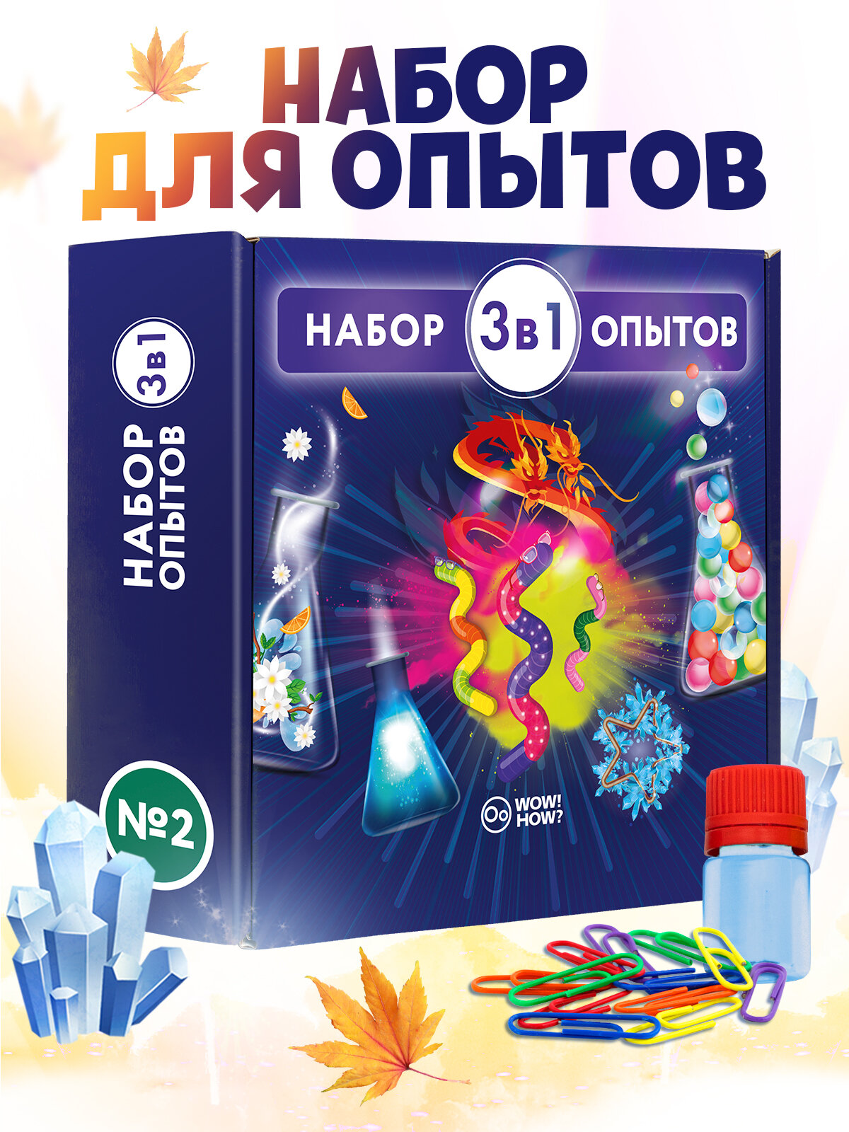 Набор для опытов из 3 химических экспериментов для детей WOW! HOW? Сет №1. Подарок для девочки, мальчика от 8 лет. Юный химик
