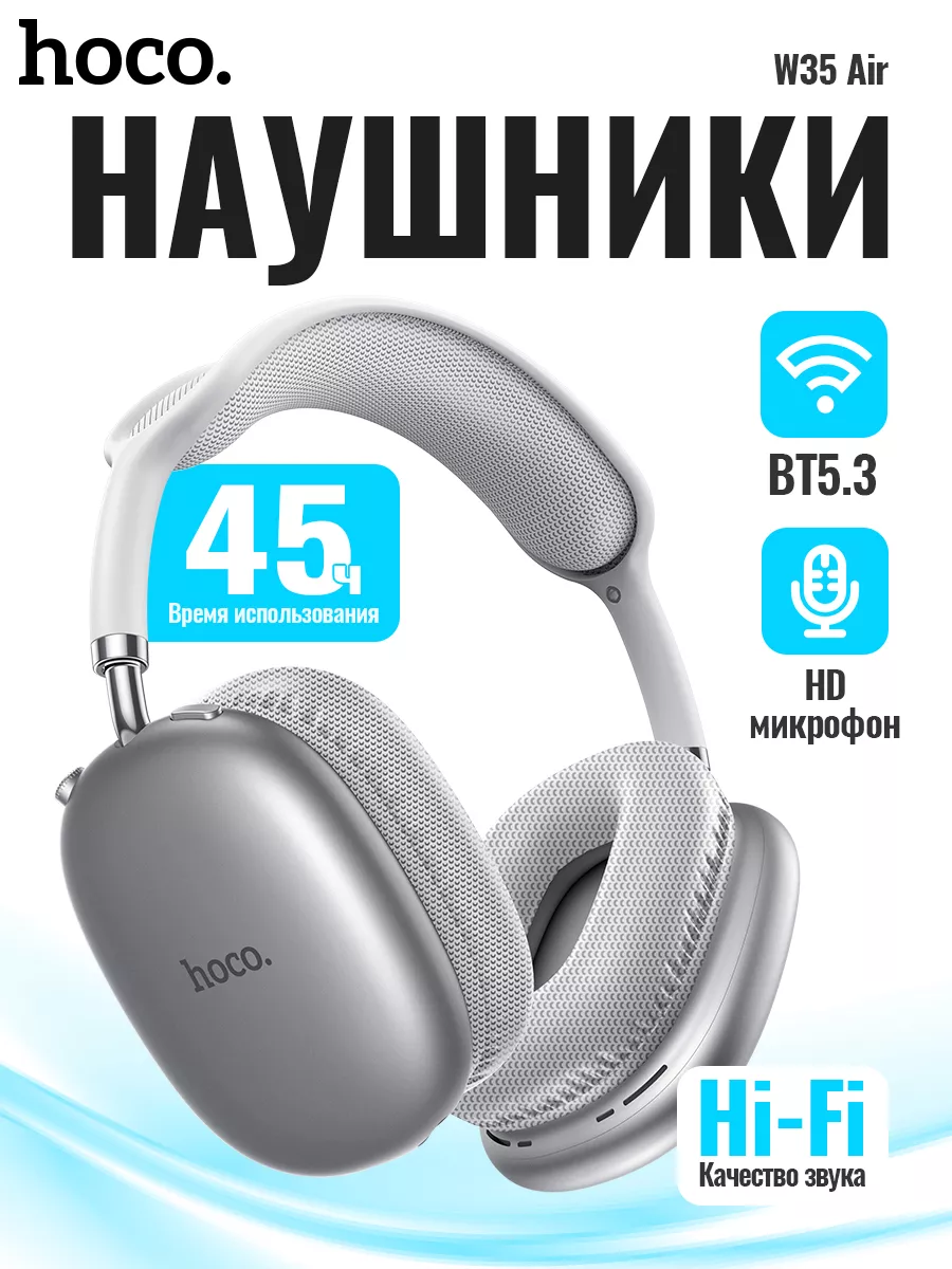 Наушники беспроводные большие Hoco W35 Air с микрофоном, полноразмерные, накладные, Bluetooth 5.3, AUX кабель 3.5 мм