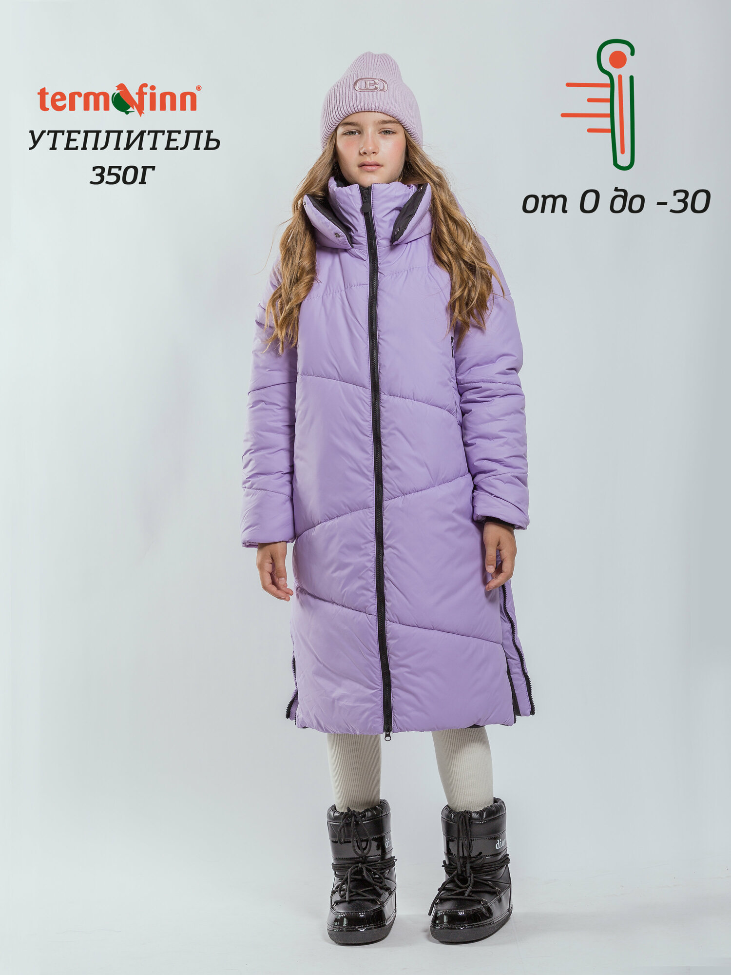 Зимнее удлиненное пальто для девочки. Модель прямого кроя с эффектом oversize. Втачной капюшон с кулиской для регулирования объема. Прилегающий высокий воротник позволит носить пальто без шарфа. Два глубоких прорезных кармана на молнии. Эластичные манжеты в рукавах для защиты от ветра. Двухзамковая молния. Функциональные разрезы на молнии по бокам позволяют подобрать оптимально удобный шаг. Резинка по линии талии разделит воздушное пространство и обеспечит прилегание по спинке. Подкладка выполнена из полиэстера. Утеплитель - Termofinn 300 гр.