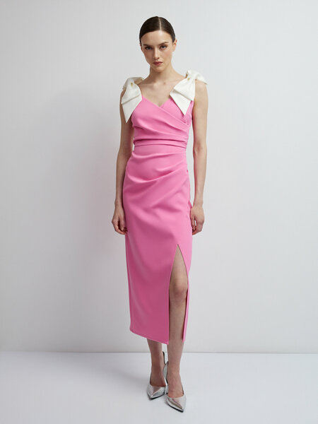 Женское облегающее платье футляр с высокой талией выделит из толпы и подчеркнёт силуэт. Сарафан декорирован разрезом сбоку по ноге и имитацией запаха, который создает V-образный вырез, поэтому отлично подойдет и как вечернее нарядное коктейльное платье. Модное платье без рукавов можно надевать как праздничное, например, на свадьбу к подруге, добавив к образу красивые интересные аксессуары. Платье на бретельках в меру короткое и в меру длинное - длина миди чуть закрывает колени. Это платье с запахом станет отличным повседневным вариантом в офис. Данная модель представлена также в больших размерах, поэтому подойдет и обладательницам пышных форм, а также для беременных на небольших сроках. Классический вариант платья на запах подойдет как для дочки, так и для мамы. Женское платье с зауженной талией отличное решение на осень, его можно удачно сочетать с пальто и ботильонами и другими осенними вещами. Элегантное платье с открытой спиной сделает ваш силуэт безупречным. Маленькое черное платье - то, в чем вы не останетесь без внимания.