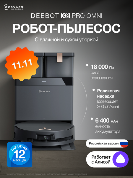Робот-пылесос ECOVACS DEEBOT X8 PRO OMNI — это флагманское устройство для комплексной уборки вашего дома, сочетающее мощное всасывание и инновационную систему мытья полов.