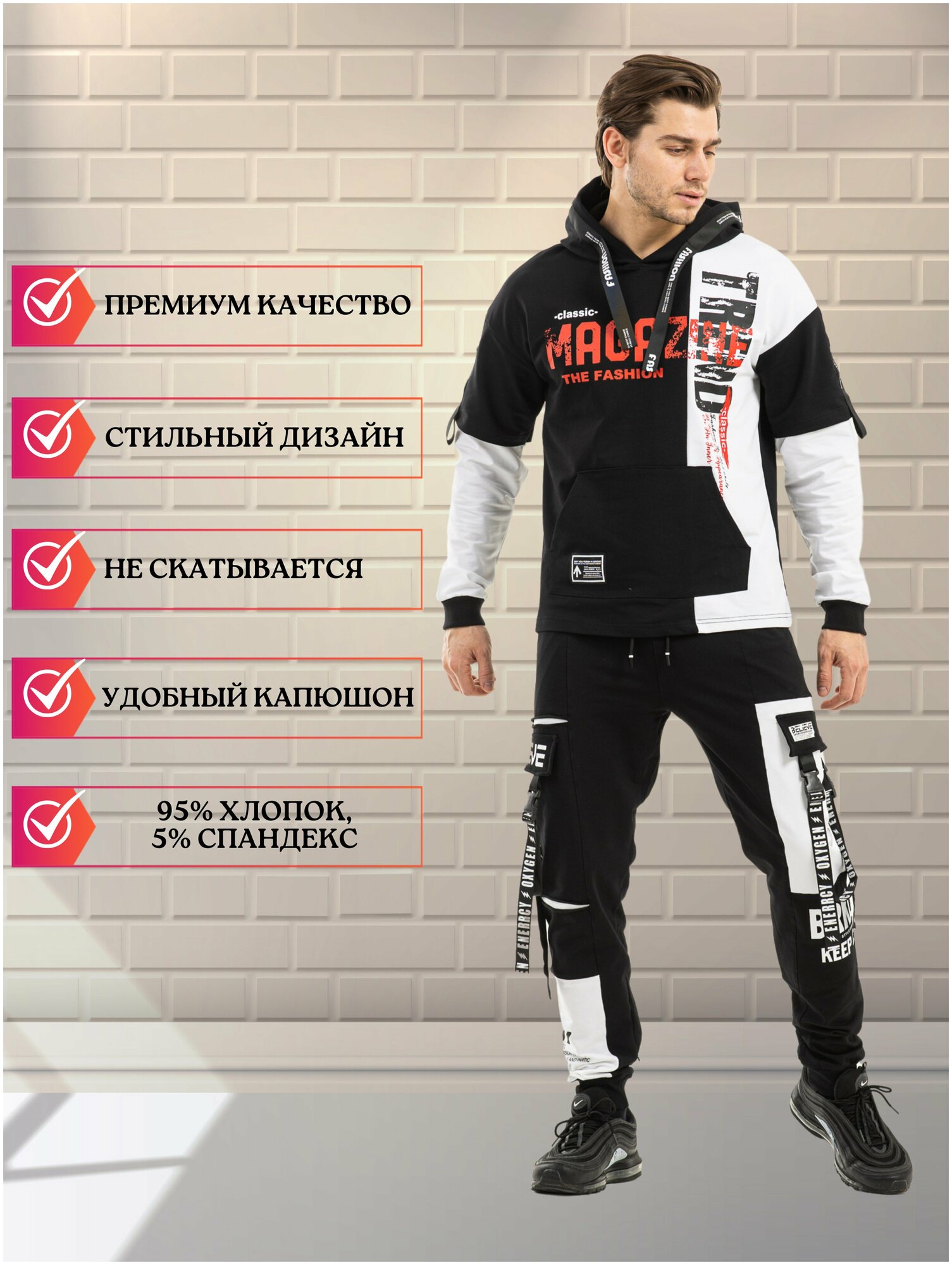 Костюм спортивный мужской, с капюшоном, подойдет для подростка, на каждый день, для прогулок, для активного отдыха, для туризма, для дома, дачи. Мужской спортивный костюм (худи с капюшоном и брюки ) выполнен из хлопка с небольшим добавлением спандекса, что позволяет ему отлично держать форму даже после многочисленных стирок, не выгорать и не выцветать. Свободная посадка обеспечивает полную свободу действий и передвижений, делает процесс ношения максимально комфортным и не препятствует воздухообмену. Оригинальный дизайн и насыщенные цвета внесут в ваш образ легкость и свежесть. Уважаемые покупатели, перед заказом товара, обращайте пожалуйста внимание на размерную сетку продавца, там указаны параметры для каждого размера. В случае, если Ваши параметры ближе к верхней границе, то лучше закажите на размер больше. Также при нестандартном росте или фигуре советуем заказывать товар на размер или два размера больше, в зависимости от вашей комплекции. В случае, если у Вас остались вопросы Вы можете с нами связаться, задав вопрос через форму на сайте.