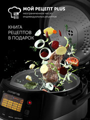 в комплект входит нержавеющий диск для готовки на пару (тут нарисована чаша), а также пластиковый половник (кстати, удобный) и ложка тоже пластиковая (стандартная, мне не нравятся такие). Хотя тут написано, что силиконовая должна быть. Мерный стаканчик удобный, отличается тем, что продолговатый, у других мультиварок обычно стаканчик. Книга рецептов не толстая, но я по рецептам и не готовлю. На первый взгляд, там вполне земные рецепты. То есть, филе бедра единорога в соусе бешамель готовить даже не собирайтесь)) С управлением разобралась, в целом все просто. Верхний ряд прог - под давлением, нижний - открытая крышка, либо просто закрыта. Свой рецепт- выбираешь пусть сам, как самурай. Утром я приготовила вкусную кашку, рецепт у меня стандартный, тут не прогадала. Молочная каша готовится 20 минут, без давления. Полный стакан крупы (мыть, конечно), 750 мл молока (я с водой мешаю обычно), соль и сахар по вкусу. Ну и ломтик масла. Работает на любой каше)) дальше варила суп (предварительно мясо на кости промываю и в маленькой кастрюле довожу до кипения, чтобы убрать пенку, промываю и кладу в мультиварку. Дальше картошку, лук, морковь и крупу. За 50 минут получилось прекрасно, можно было ставить и меньше. Дальше я варила перловку (она у меня была в составе вкуснейших тефтель , если раньше ели только с рисом, смело пробуйте в перловкой, моя семья из 6 человек смела враз) Вода:крупа в соотношении 1:1,15. Работает , кстати, и на рисе тоже. Получилось очень вкусно. За 15 минут. Moulinex кажется проще и привычнее для меня, но она и стоит в два раза дороже. Эта модель дешевле и с промокодом — ещё приятнее. Смело ставлю 5 и рекомендую!