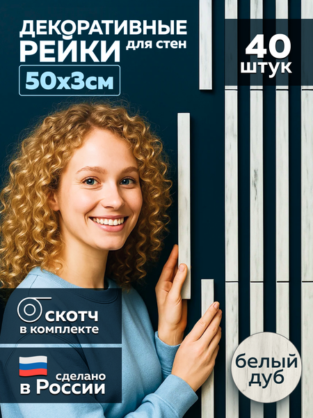 {"widgets":{"@card/UniversalPromoBadge":{"/content/page/fancyPage/defaultPage/universalPromoBadge":{"wrapperProps":{"margins":{"bottom":"3"}},"initialTime":1771310740033,"offerComposeId":"13845922516487693390"}}},"meta":{"/content/page/fancyPage/defaultPage/universalPromoBadge":{"name":"@card/UniversalPromoBadge"}},"collections":{"productServiceSnippets":{"13845922516487693390":{"productSnippet":{"snippetId":"document_id","type":"MODEL_CARD_LAYOUT","productPayload":{"snippetStyle":"NORMAL","title":{"value":"Рейки декоративные 50 х 3 см ХДФ, белый дуб, 40 шт, самоклеящиеся для стен"},"badges":{},"price":{"actualPrice":{"amount":{"intPart":3851,"currency":"RUR"},"suffix":"YA_PAY","style":"GREEN","type":"DISCOUNT_YA_PAY"},"oldPrice":{"amount":{"intPart":3890,"currency":"RUR"},"style":"GREY"},"initialPrice":{"amount":{"intPart":5999,"currency":"RUR"},"style":"STRIKETHROWED"}},"gallery":{"mediaItems":[{"picture":{"baseUrl":"https://avatars.mds.yandex.net/get-mpic/4615396/2a0000019783863e3299cbc2e22b3dcaf43d/","width":1200,"height":1600,"title":"Рейки декоративные 50 х 3 см ХДФ, белый дуб, 40 шт, самоклеящиеся для стен"},"type":"IMAGE"},{"picture":{"baseUrl":"https://avatars.mds.yandex.net/get-mpic/12280362/2a0000019783863e3397ab7f194804e3d7ca/","width":1200,"height":1600,"title":"Рейки декоративные 50 х 3 см ХДФ, белый дуб, 40 шт, самоклеящиеся для стен"},"type":"IMAGE"},{"picture":{"baseUrl":"https://avatars.mds.yandex.net/get-mpic/10393486/2a0000019783863e348b9fcada641f879507/","width":1200,"height":1600,"title":"Рейки декоративные 50 х 3 см ХДФ, белый дуб, 40 шт, самоклеящиеся для стен"},"type":"IMAGE"},{"picture":{"baseUrl":"https://avatars.mds.yandex.net/get-mpic/15034155/2a0000019783863e34775df02c85e2464725/","width":1200,"height":1600,"title":"Рейки декоративные 50 х 3 см ХДФ, белый дуб, 40 шт, самоклеящиеся для стен"},"type":"IMAGE"},{"picture":{"baseUrl":"https://avatars.mds.yandex.net/get-mpic/4249638/2a0000019783863e344efa9f728a68125c26/","width":1200,"height":1600,"title":"Рейки декоративные 50 х 3 см ХДФ, белый дуб, 40 шт, самоклеящиеся для стен"},"type":"IMAGE"},{"picture":{"baseUrl":"https://avatars.mds.yandex.net/get-mpic/15319047/2a0000019783863e37bf19792ca1340a35dc/","width":1200,"height":1600,"title":"Рейки декоративные 50 х 3 см ХДФ, белый дуб, 40 шт, самоклеящиеся для стен"},"type":"IMAGE"},{"picture":{"baseUrl":"https://avatars.mds.yandex.net/get-mpic/11906264/2a0000019783863e347e2b85fad100d25dfe/","width":1200,"height":1600,"title":"Рейки декоративные 50 х 3 см ХДФ, белый дуб, 40 шт, самоклеящиеся для стен"},"type":"IMAGE"},{"picture":{"baseUrl":"https://avatars.mds.yandex.net/get-mpic/11824272/2a0000019783863e34626a8e1544301f3651/","width":1200,"height":1600,"title":"Рейки декоративные 50 х 3 см ХДФ, белый дуб, 40 шт, самоклеящиеся для стен"},"type":"IMAGE"},{"picture":{"baseUrl":"https://avatars.mds.yandex.net/get-mpic/5209489/2a0000019783863fe5091fc286abc12f7502/","width":1200,"height":1600,"title":"Рейки декоративные 50 х 3 см ХДФ, белый дуб, 40 шт, самоклеящиеся для стен"},"type":"IMAGE"},{"picture":{"baseUrl":"https://avatars.mds.yandex.net/get-mpic/12277996/2a0000019783863e34a8a41eab4f5626e59d/","width":1200,"height":1600,"title":"Рейки декоративные 50 х 3 см ХДФ, белый дуб, 40 шт, самоклеящиеся для стен"},"type":"IMAGE"},{"picture":{"baseUrl":"https://avatars.mds.yandex.net/get-mpic/5426148/2a0000019783863e327b0e516e8347e68daa/","width":1200,"height":1600,"title":"Рейки декоративные 50 х 3 см ХДФ, белый дуб, 40 шт, самоклеящиеся для стен"},"type":"IMAGE"},{"picture":{"baseUrl":"https://avatars.mds.yandex.net/get-mpic/15282130/2a0000019783863e33d17f30b609906d750e/","width":1200,"height":1600,"title":"Рейки декоративные 50 х 3 см ХДФ, белый дуб, 40 шт, самоклеящиеся для стен"},"type":"IMAGE"}]},"rating":{"ratingValue":4.8,"ratingCount":28,"reviewsCount":11,"ratingCountStats":{"cnt1":1,"cnt2":0,"cnt3":1,"cnt4":0,"cnt5":26},"snippet":{"rating":"4.8","type":"product","description":"(28) · 186 купили","descriptionList":["(28)","186 купили"],"ratingStar":"5"}},"wishlistButton":{"businessId":40376766,"mskuId":4466804370,"modelId":1230044441,"oskuId":4466804370,"offerId":"rukGFhbHOrAeGeQkOkap5g"},"productRating":{"rating":"4.8","type":"product","description":"(28) · 186 купили","descriptionList":["(28)","186 купили"],"ratingStar":"5"}},"baobabPayload":{"type":"offer","wareId":"rukGFhbHOrAeGeQkOkap5g","modelId":1230044441,"marketSku":"4466804370","snippet_type":"product","isExpress":false,"price":5999,"additionalPrices":[{"priceType":"yaBank","priceValue":3851},{"priceType":"unknown","priceValue":3890}],"hid":13012372,"shopId":431782,"shopSku":"traf_pan_line3_bel","supplierId":41515756,"supplierType":3,"isUltima":false,"oskuId":4466804370,"snippetTheme":"GRID_FULL","stockCount":100,"rating":{"rating":"4.8","purchaseCount":"186","gradesCount":"28","ratingType":"product"},"promoLogJoinId":"5d8c5ae4ce32a83b56ac07c1fe3612f0/be1141b45577fc9e","shopPromoIds":["cf_136293","fZ3XLaWtLFCVyd6AGdo2aA"]},"themeType":"GRID_FULL"}}}}}