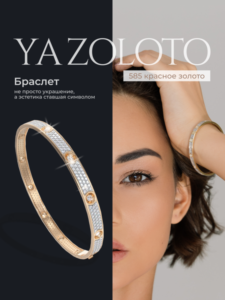 Жесткий браслет YA ZOLOTO, желтое золото, 585 проба, фианит